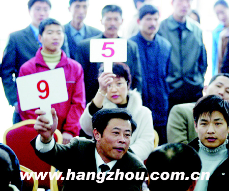 “起拍价2800元。开始竞拍!”话音刚落,“3000元”、“3400元”、“4200元”……竞拍声不绝于耳。昨天上午,萧山区所前镇巨佳茶果市场内人声鼎沸,一场特殊的拍卖会正在进行中。拍品是刚刚获得首届萧山巨佳茶艺节生态茶炒制比赛特等奖的50克“巨佳龙井”。
