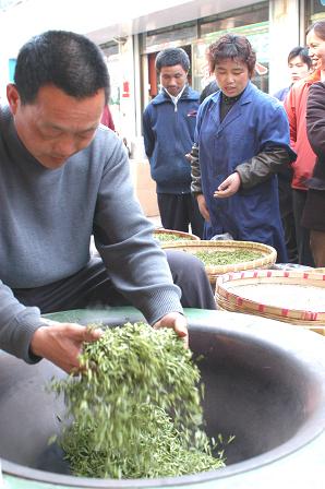 据悉,今年洞庭(山)碧螺春茶业协会还制定的《原产地域产品洞庭山碧螺春茶包装通用技术标准》要求,需把原产地专用标志、证明商标或企业商标统一加贴在正面右上角;有关部门也制订了相应的打假措施,形成了严密的打假防线。(许卫平摄)